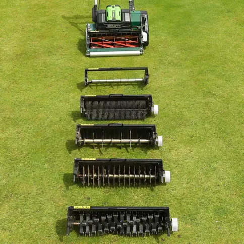 Denne pakken inkluderer maskin, 6-blads sylinder, gressoppsamler, hjelpehjulsett